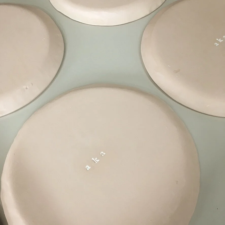 this set of plates and bowls were made for some dear friends here in nashville, in the summer of 2017. i handbuilt the plates, and threw and trimmed the bowls on the wheel. throwing multiple bowls, of the same shape and size, is really challenging to do. while i improved immensely through the experience, i certainly threw some duds too!