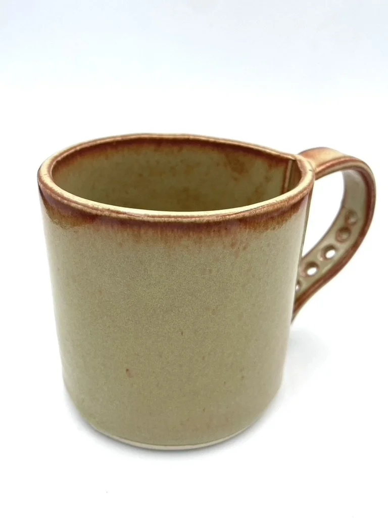 this little mug was a bit of a handle experiment, but it turned out cooler than expected! “hole punch” detail on the handle.